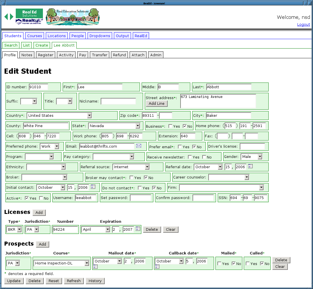 Back Back Editing a student record.